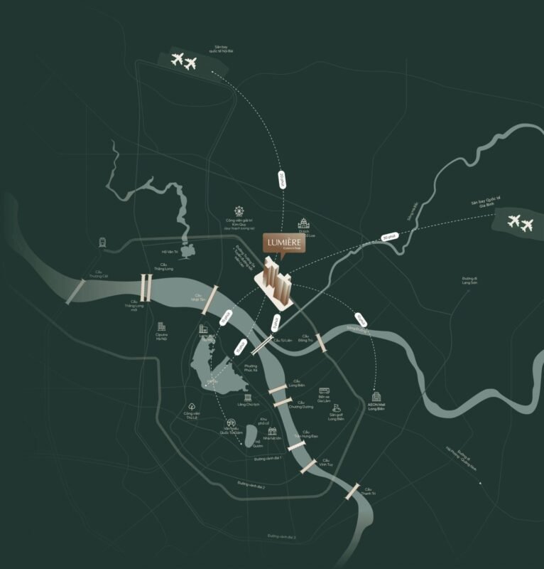 Lumier Essence Peak sở hữu vị trí đắc địa tại trung tâm khu đô thị Vin Global Gate Cổ Loa – cửa ngõ giao thương mới của Hà Nội. Dự án nằm trên trục giao thông huyết mạch kết nối nhanh tới trung tâm thành phố, sân bay Nội Bài và các tỉnh phía Bắc.